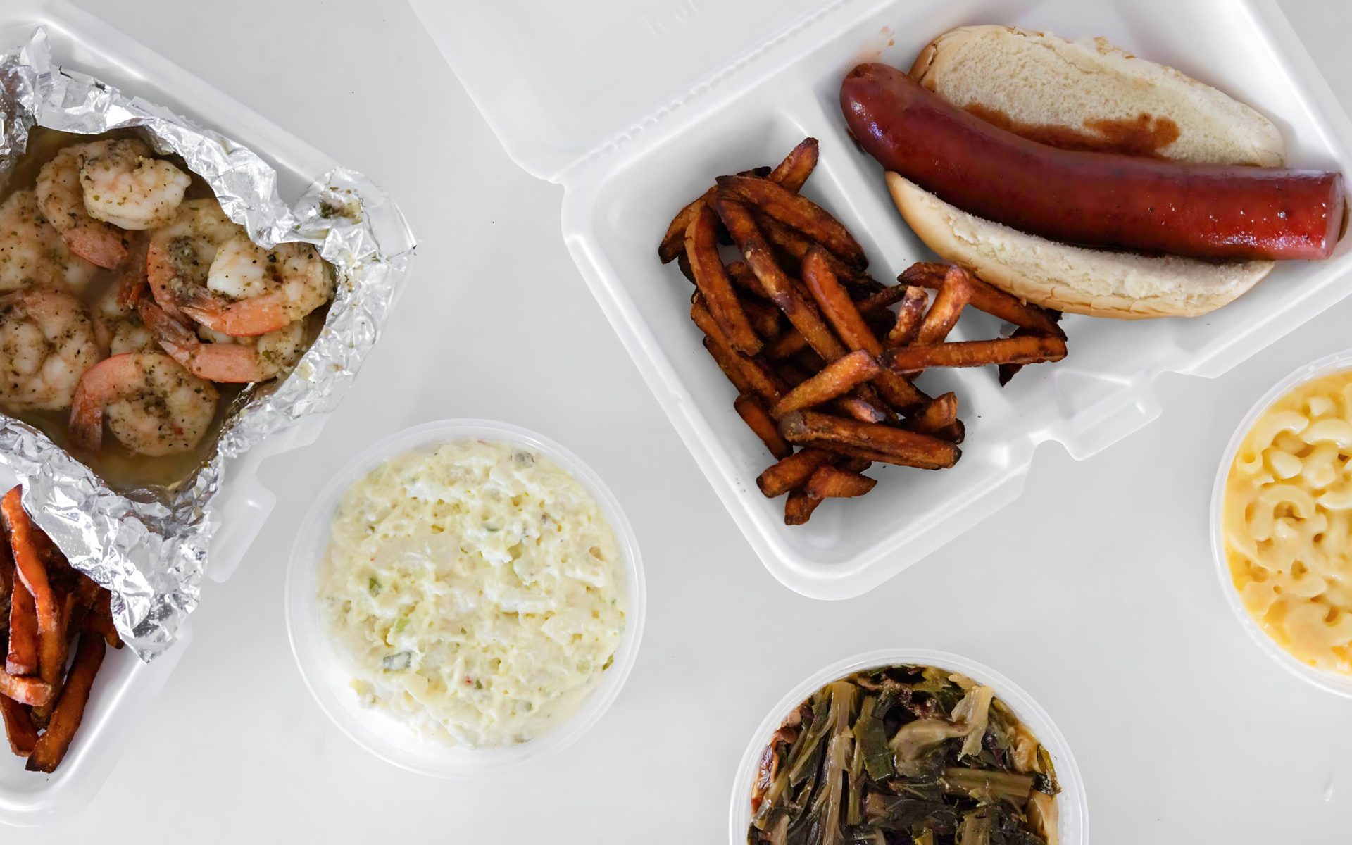 We are known for Chicken Wings, Wings, Halal Food, Turkey Legs, Burger, Potato Salad, Smoked Wings, Pulled Pork, Shrimp, Turkey Sandwich, Soul Food, American Food, Ribs, Sandwiches, BBQ, Baked Beans, Pulled Pork Sandwich, Brisket, Burgers, Pork, Deli Sandwiches, Collard Greens, and Salads